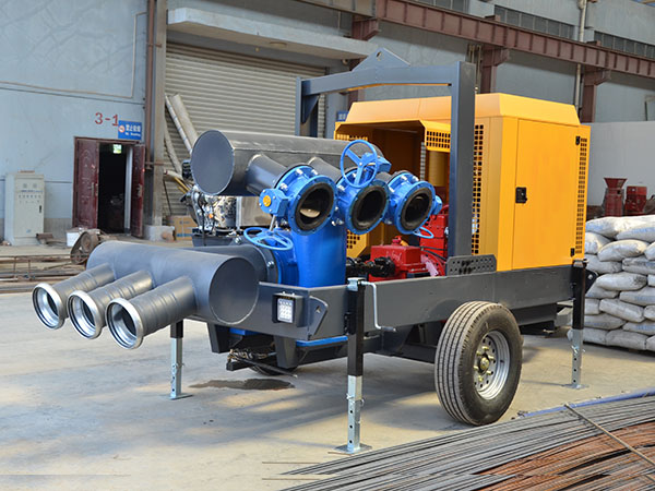 湖北荊州應急局驗收貝德科技半架式四輪移動排澇泵車
